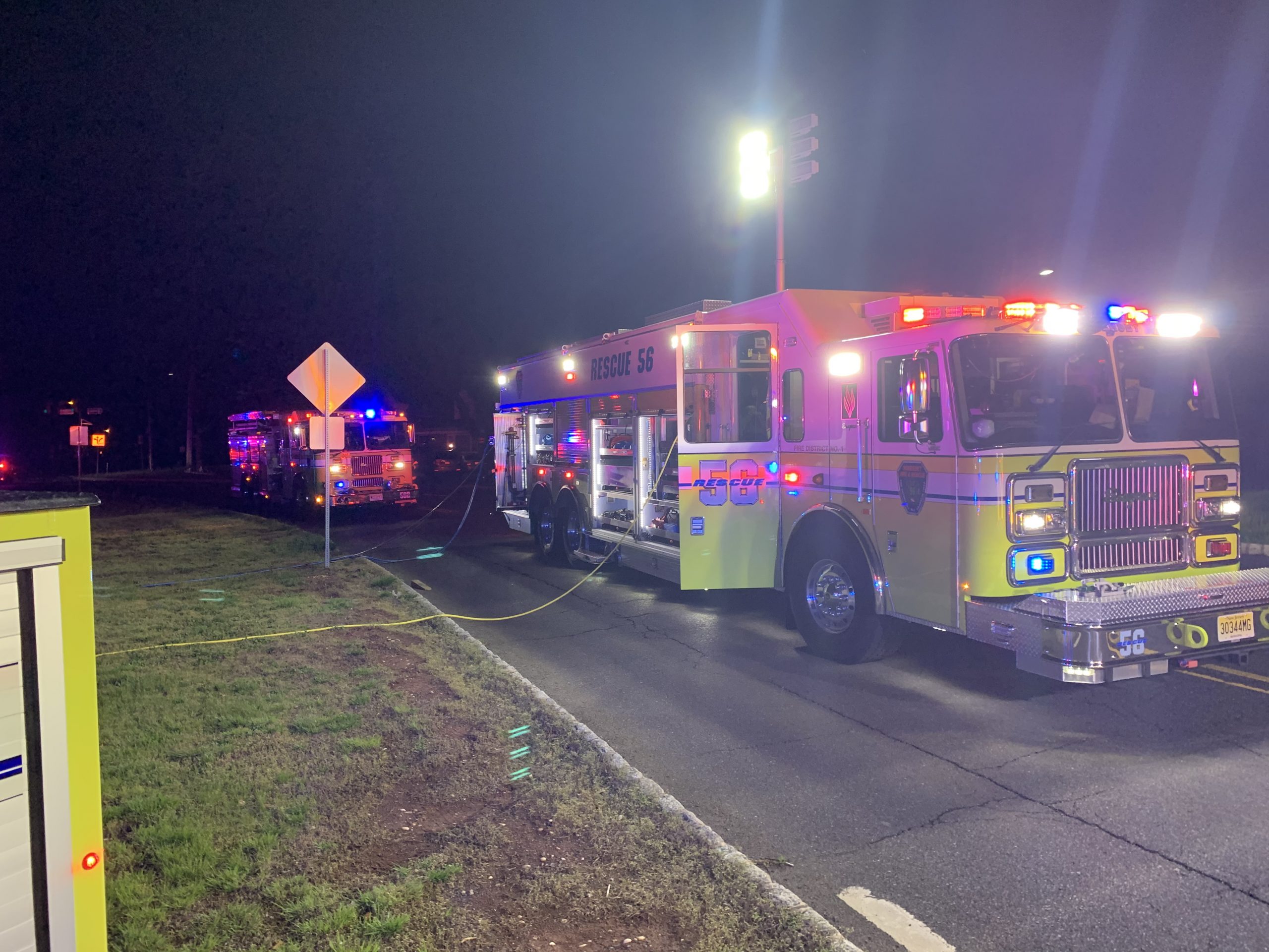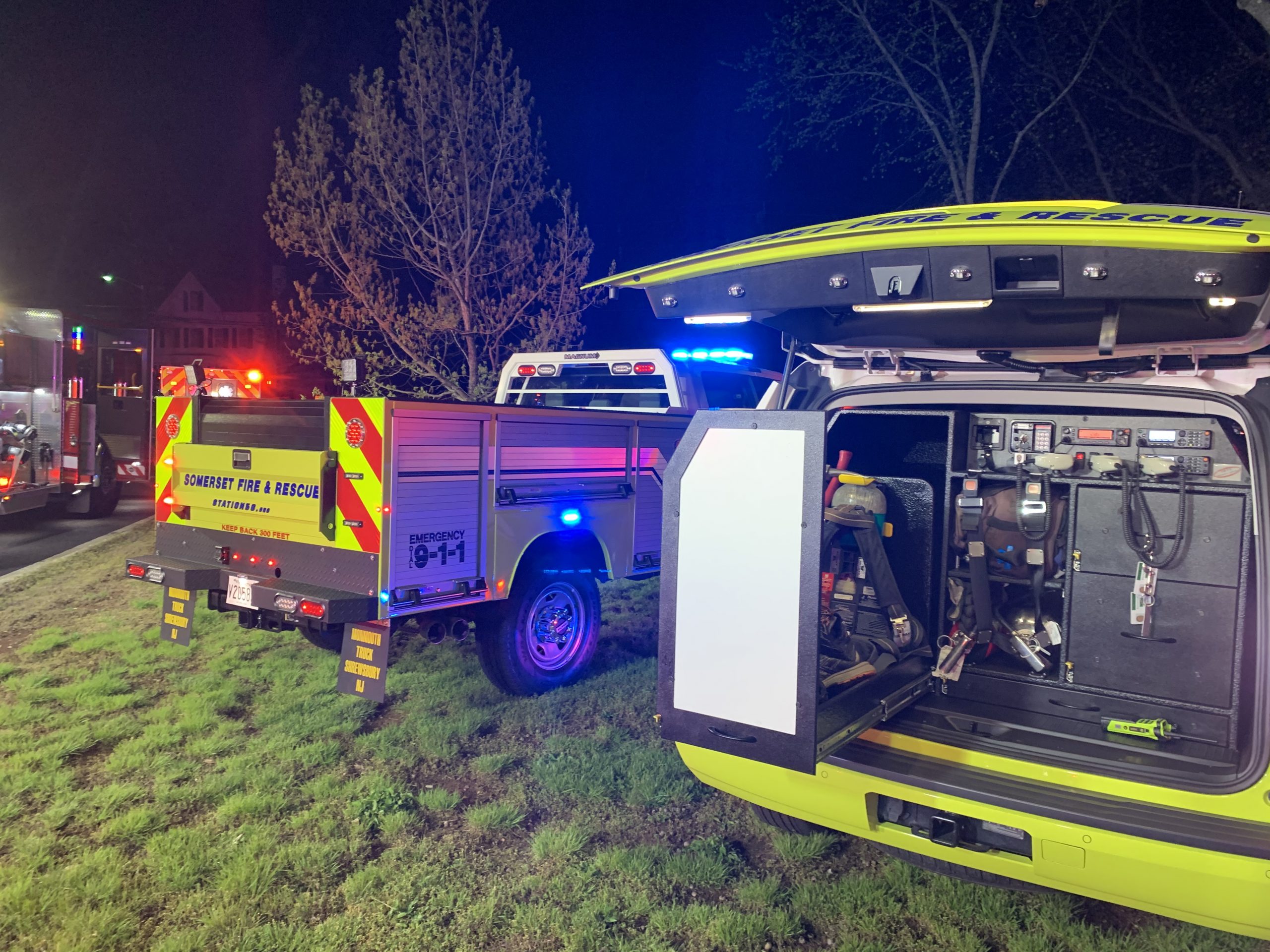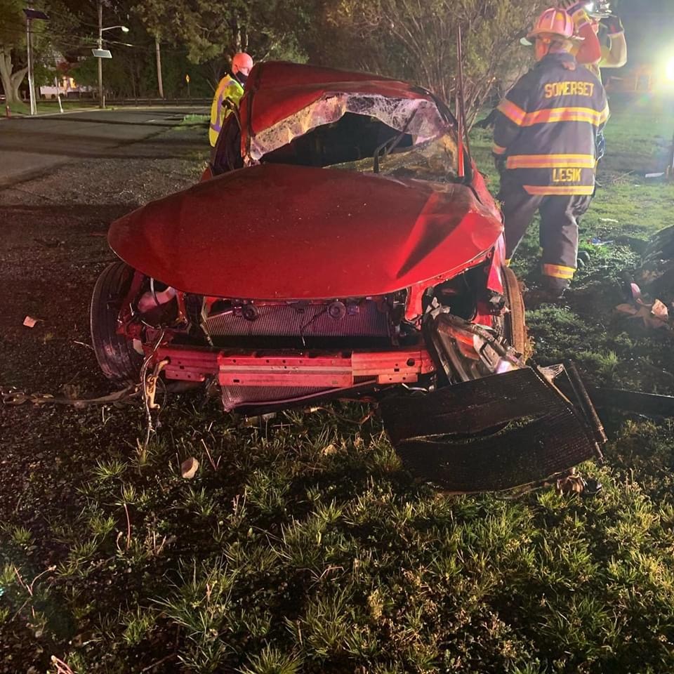This morning at 01:32 hours Stations 44 (Middlebush) and 56 (Somerset) were dispatched to South Middlebush Road for the reported motor vehicle accident with entrapment . Chief 56 arrived and confirmed a car on it’s side with the driver trapped. Engine 441 arrived and stretched a precautionary hoseline and assisted Rescue 56 with stabilization of the vehicle. Car 562 and Engine 562 arrived shortly after and the combined crew was able to quickly and safely remove the driver. Great job by all on scene.