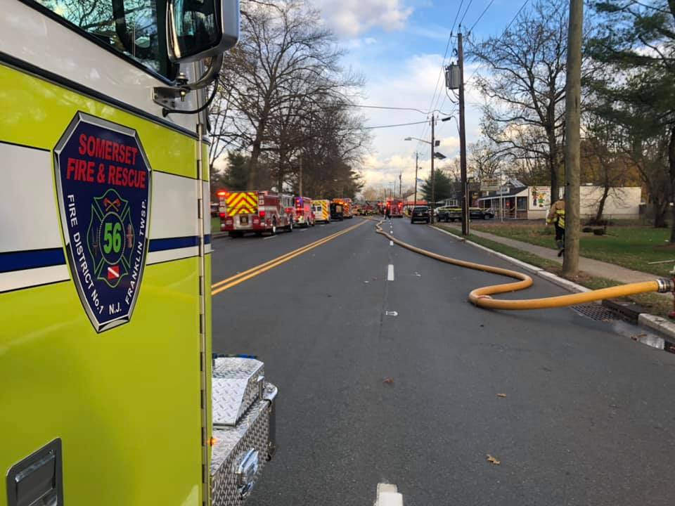 Franklin Fire District 1 operated throughout the storm and the days following, performing water rescues and answering calls for service. Pictured is units operating at School House Road x Weston Canal Road. Our Marine units, supported by helo operations, rescued 36 people from Zarephath and Pizza n’ Pasta in Manville.